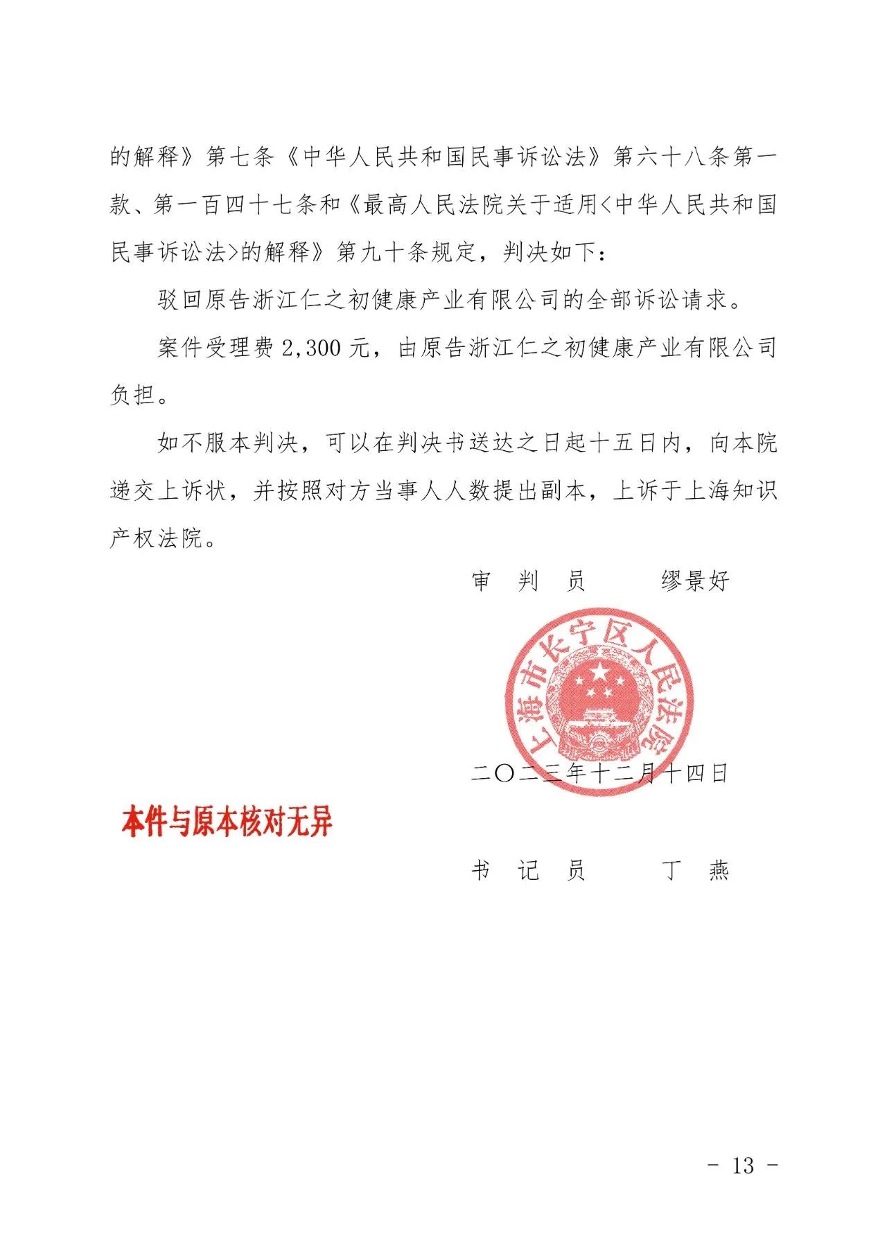 北海辉知胜诉佳讯 | “仁之初健康”著作权及不正当竞争纠纷案,法院:驳回全部诉讼请求!